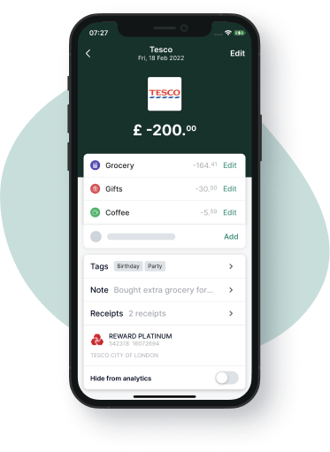 Fintelli can make it easier to keep track of all your transactions. It automatically categorises transactions and lets you split them into different categories, so that the information is organised just how you want it!